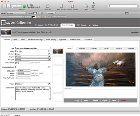 Art Collection Software - My art collection is a software for windows, mac and ios that helps you organize, track and protect your art collection or portfolio. Designed for galleries, artists, archivists and collection managers. It offers a powerful database, invoicing, payment. It offers tools for cataloging, reporting, invoicing, web. You can create reports, track provenance, share your collection, and access your.